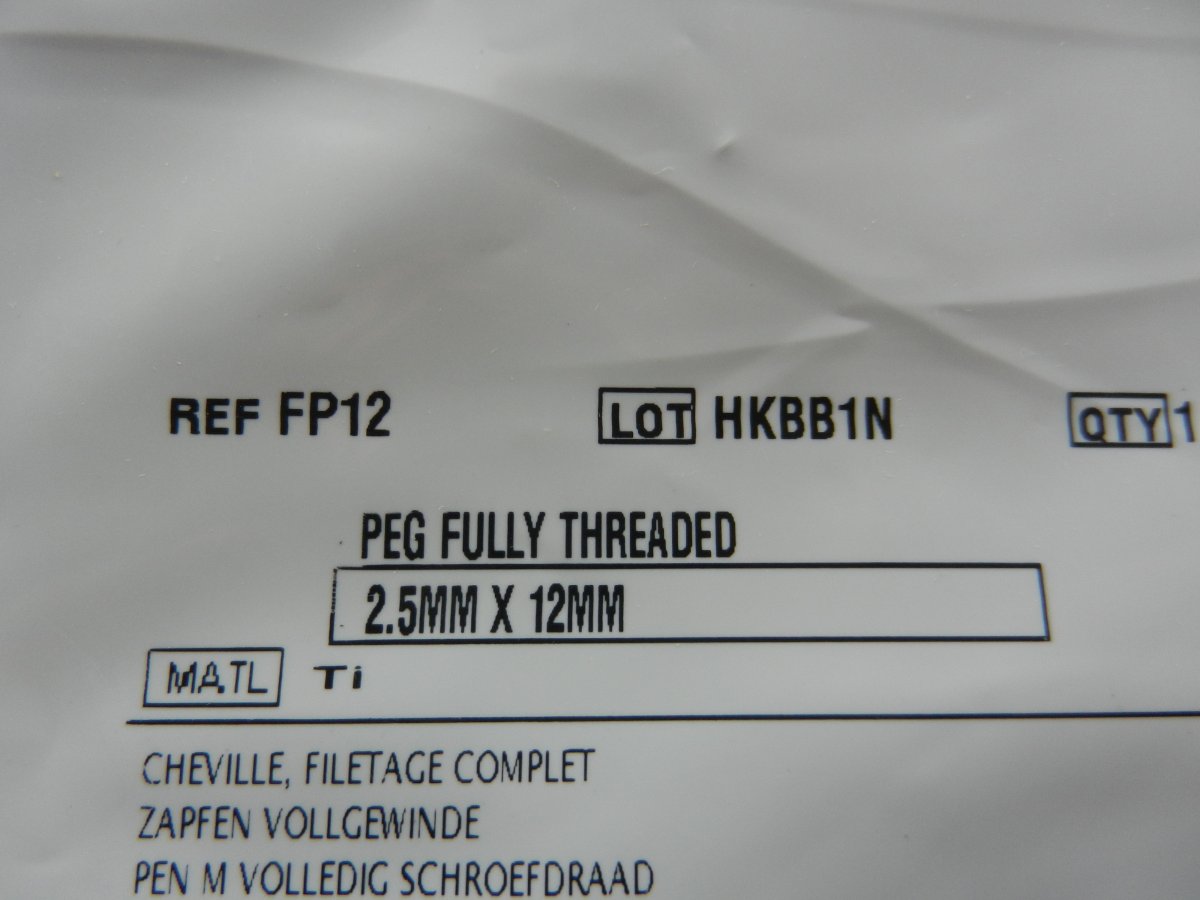 Depuy FP12 Fully Threaded Peg 2.5mm x 12mm