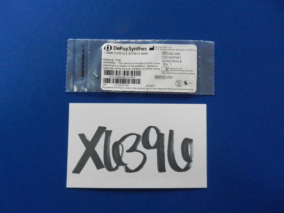 Depuy Synthes 200.006 Cortex Screw 1.5mm x 6mm