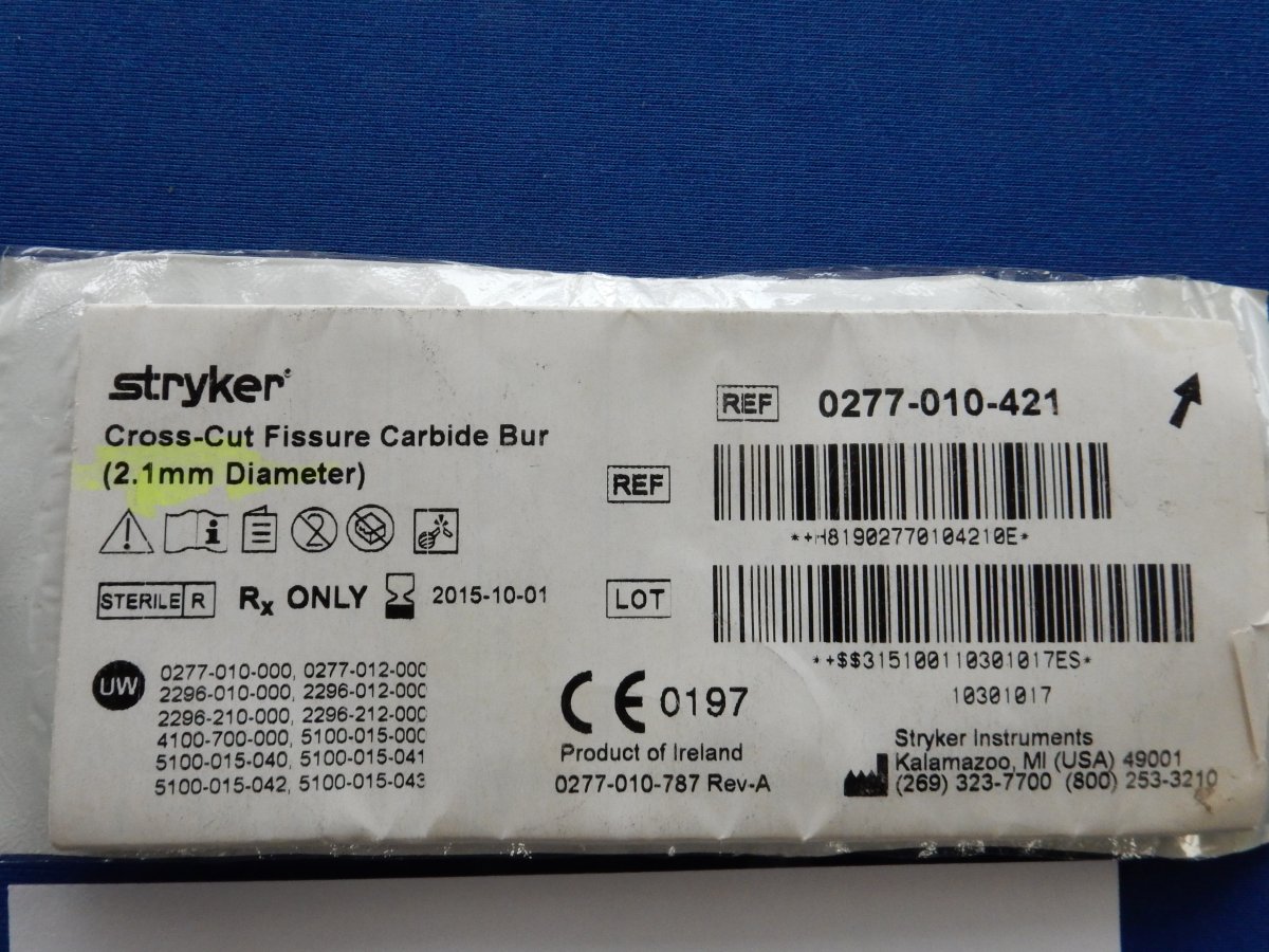 Stryker 0277-010-421 Cross-Cut Fissure Carbide Bur (2.1mm Diameter)
