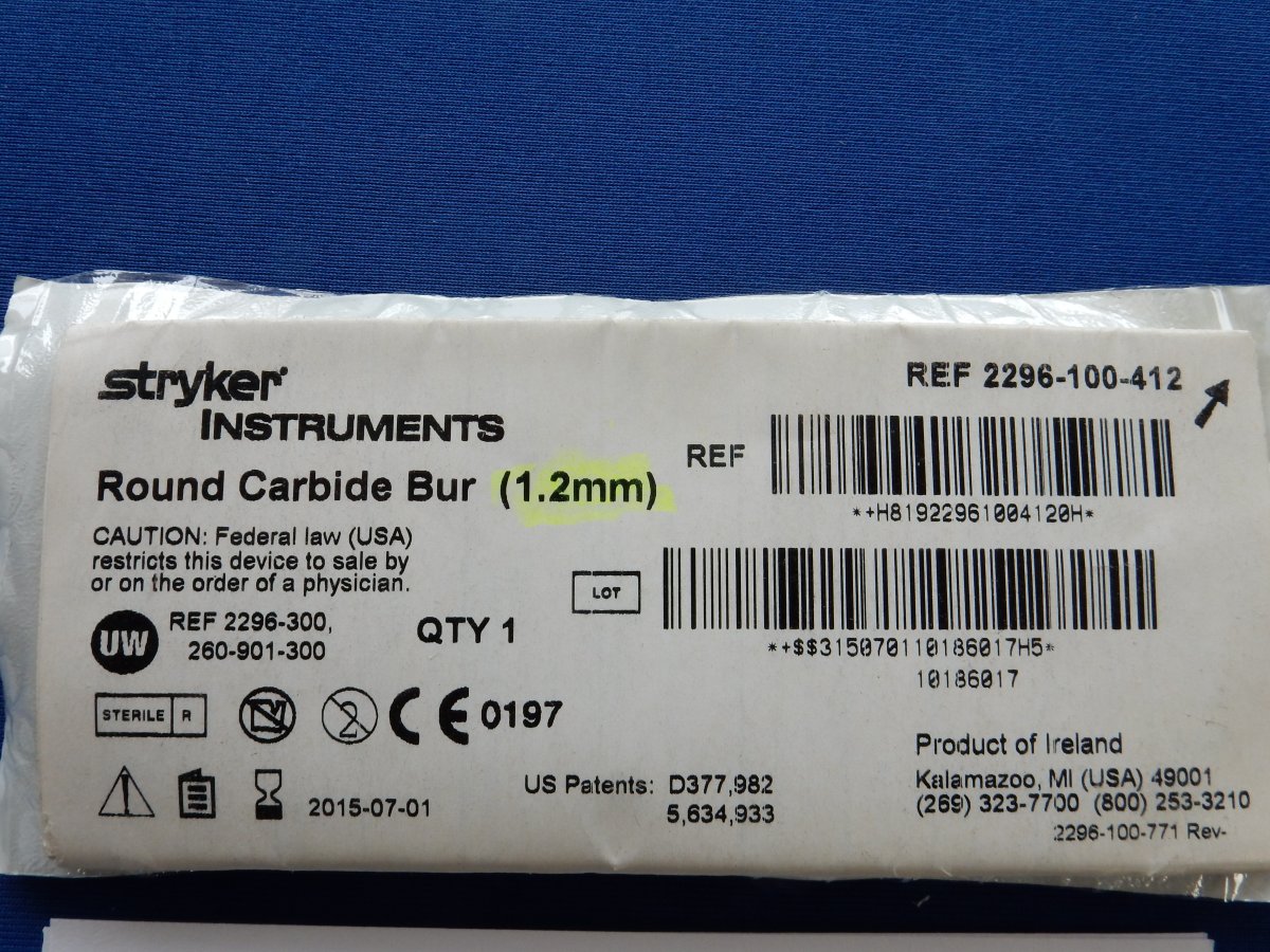 Stryker 2296-100-412 Round Carbide Bur (1.2mm)