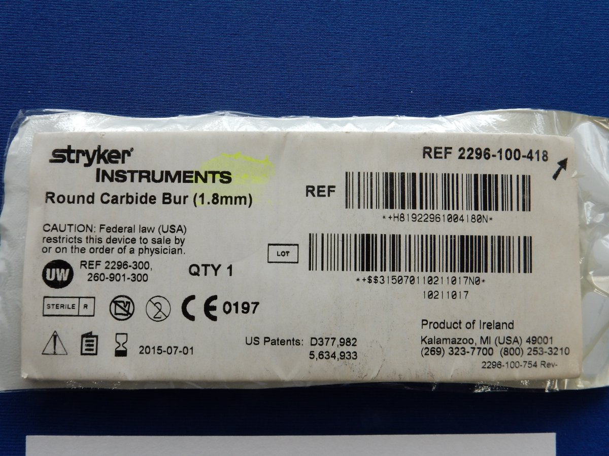 Stryker 2296-100-418 Round Carbide Bur (1.8mm)