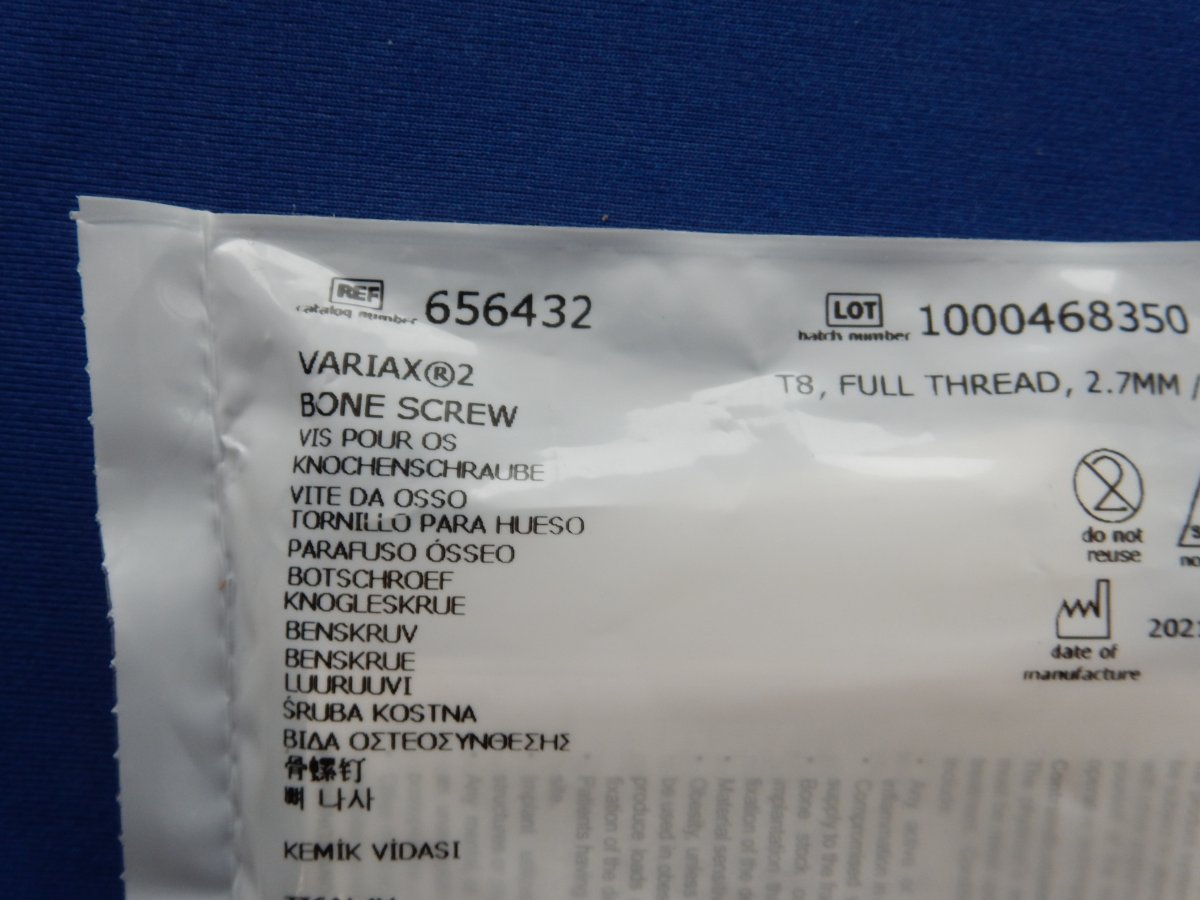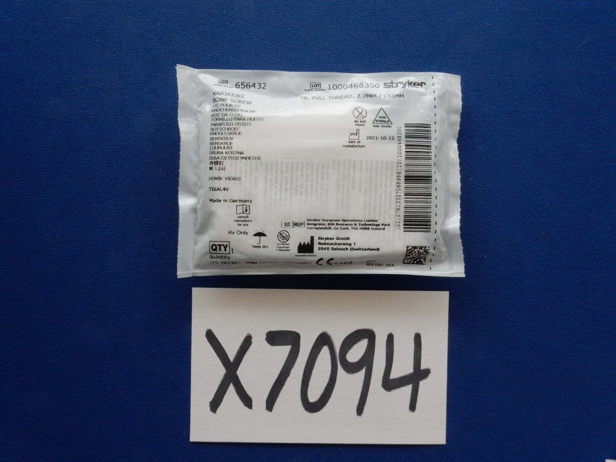 Stryker 656432 Variax 2 Bone Screw T8, Full Thread, 2.7mm