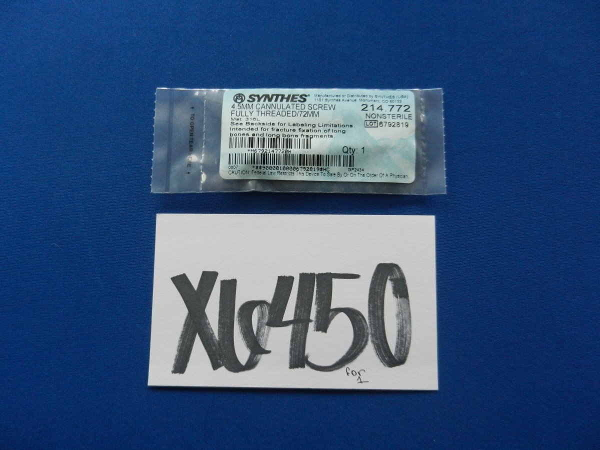 Synthes 214.772 Cannulated Screw Fully Threaded 4.5mm x 72mm