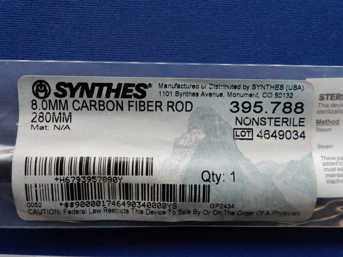 Synthes 395.788 8.0mm Carbon Fiber Rod 280mm