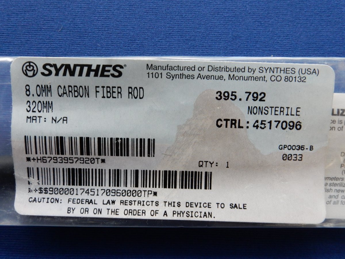 Synthes 395.792 8.0mm Carbon Fiber Rod 320mm