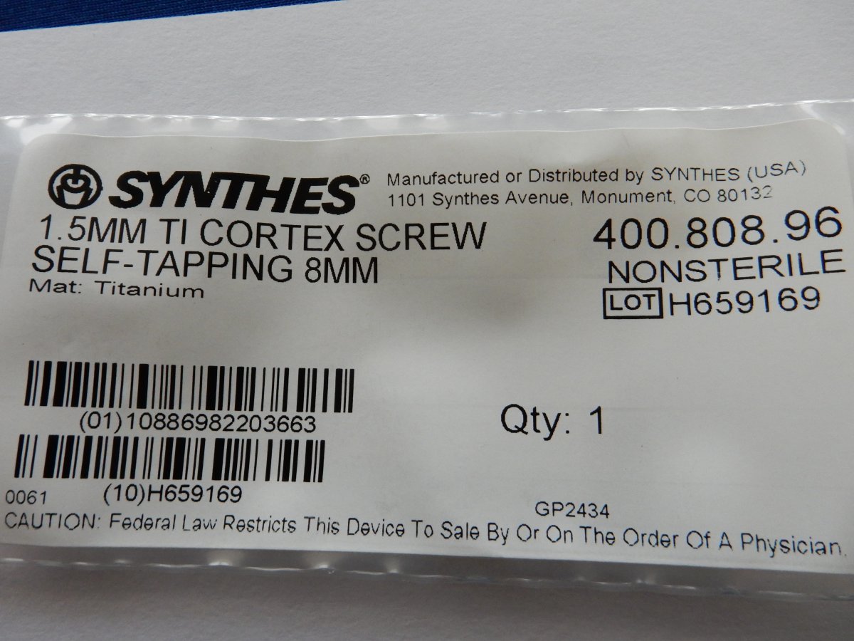 Synthes 400.808.96 1.5mm TI Cortex Screw Self-Tapping 8mm
