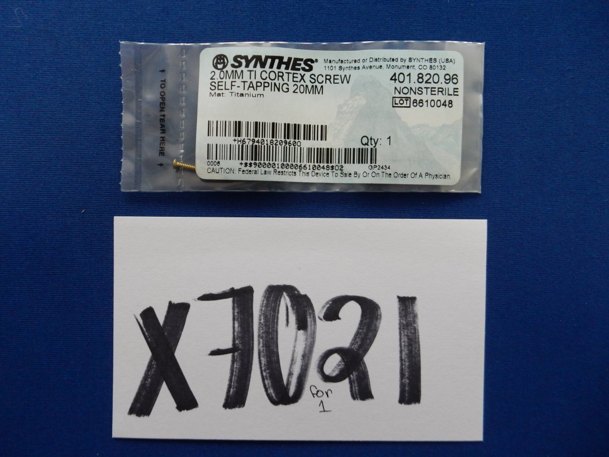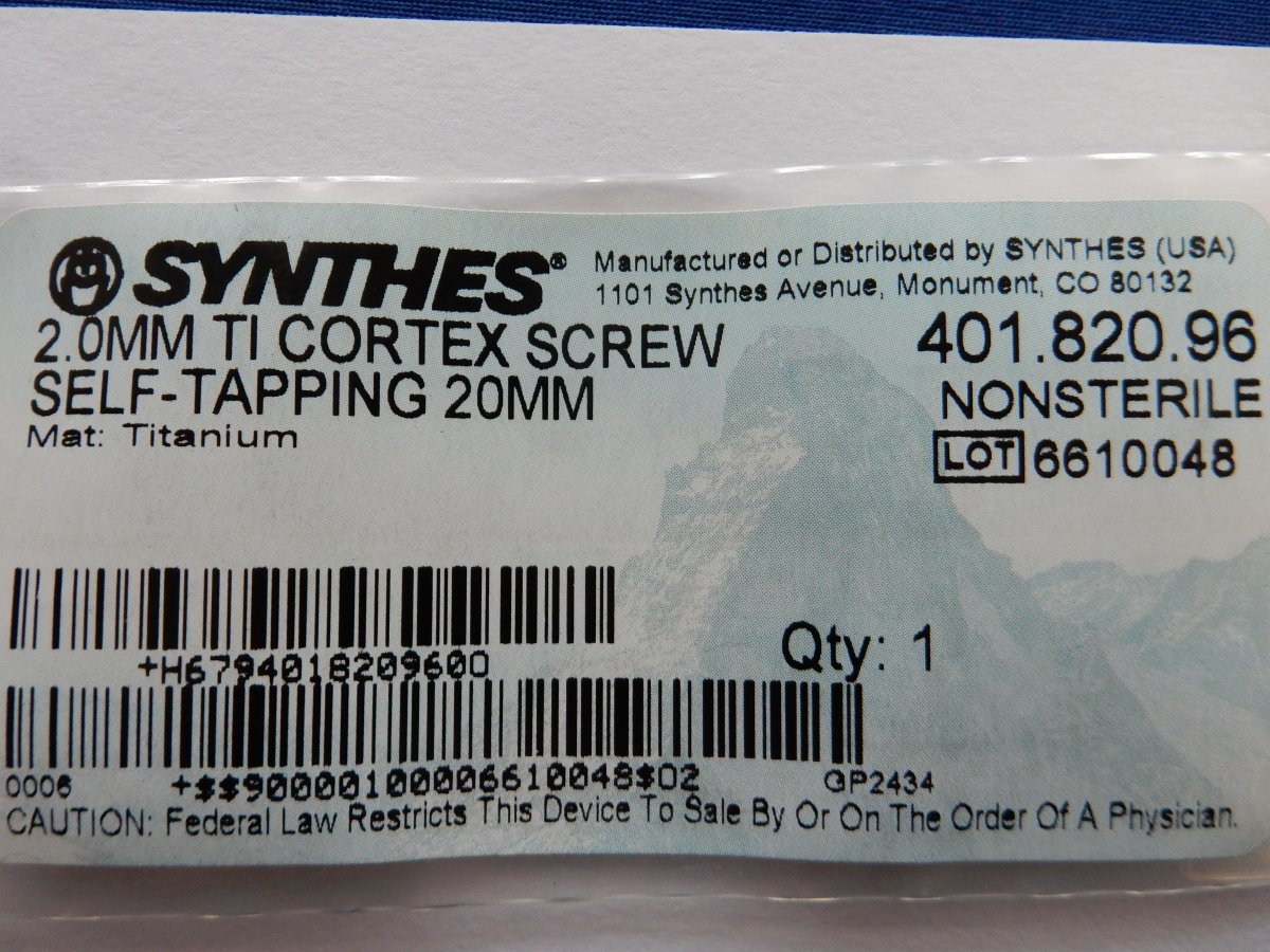Synthes 401.820.96 2.0mm TI Cortex Screw Self-Tapping 20mm