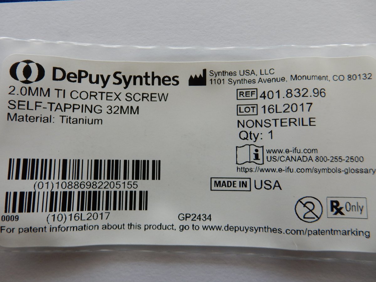 Synthes 401.832.96 2.0mm TI Cortex Screw Self-Tapping 32mm