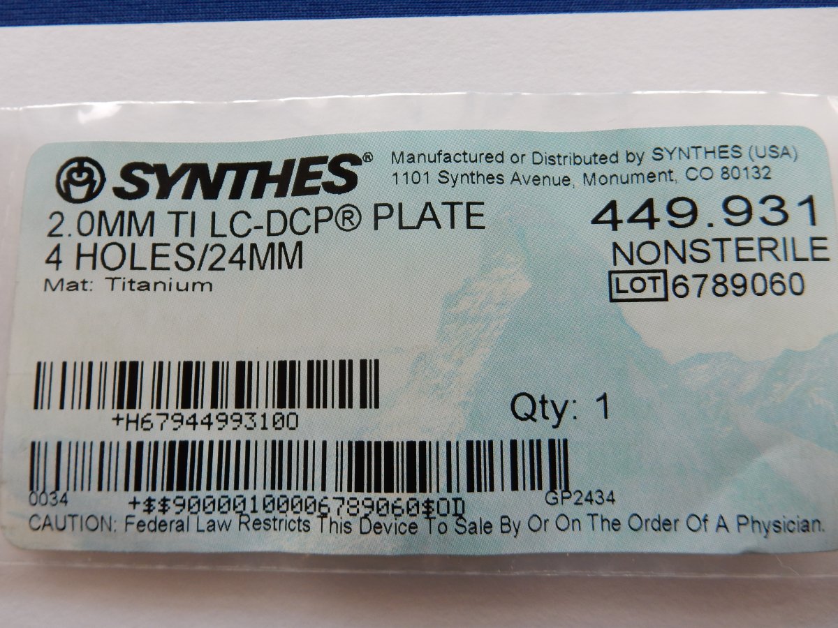 Synthes 449.931 2.0mm TI LC-DCP 4 Holes/24mm