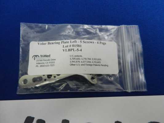TriMed Volar Bearing Plate Left, 5 Screws, 4 Pegs REF VLBPL-5-4
