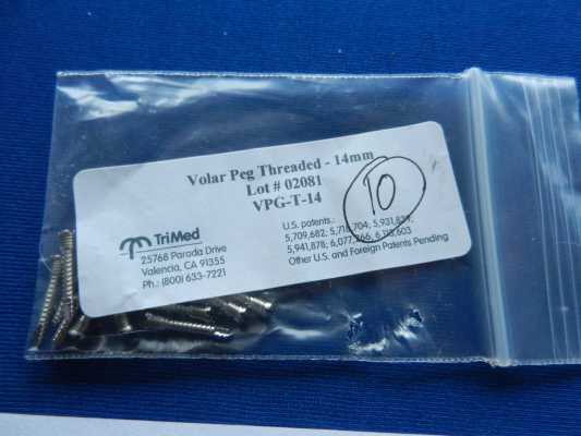 TriMed Volar Peg Threaded, 14mm QTY (10) REF VPG-T-14